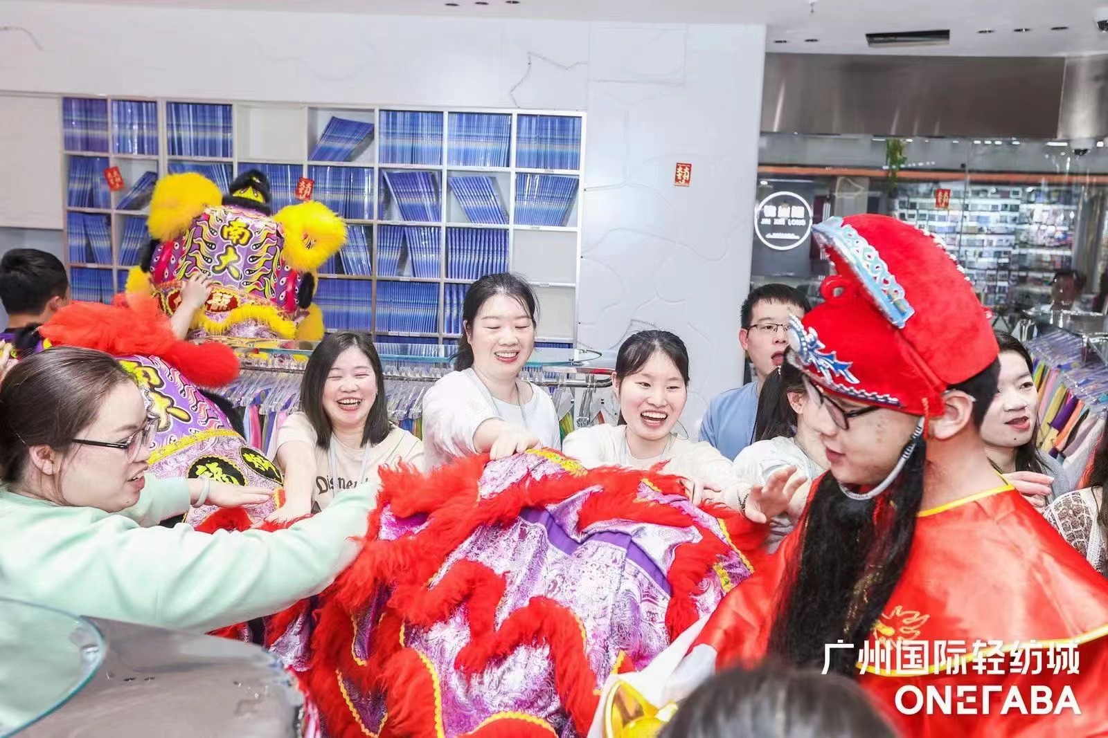 表演顺利结束后,醒狮与财神们一起兵分逾70个小队,分头前往轻纺城内各楼层为商户们逐一进行旺场采青,传递财气、喜气、运气、福气,共同把开年的好彩头送达到城内的每一个角落。商户们也都早已做好准备,提前布置了寓意着生财利市、兴旺发达的采青阵,还有各式满载吉利好意头的互动道具,现场精彩不断、欢笑不止。期间有商户代表分享道:“每年开年广州国际轻纺城的醒狮旺场活动都是我们最期待的,不仅极大带旺了城内人气,也给整个中大纺织商圈注入了满满的信心、活力与动力。”